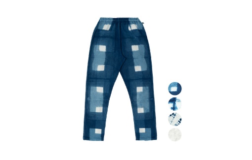 アバンギャルドな絞りもんぺ 愛知県有松を産地とする有松鳴海絞りは、江戸時代初期より伝わる染めの技法で、図案に応じて、生地を絞り、柄や凹凸を...