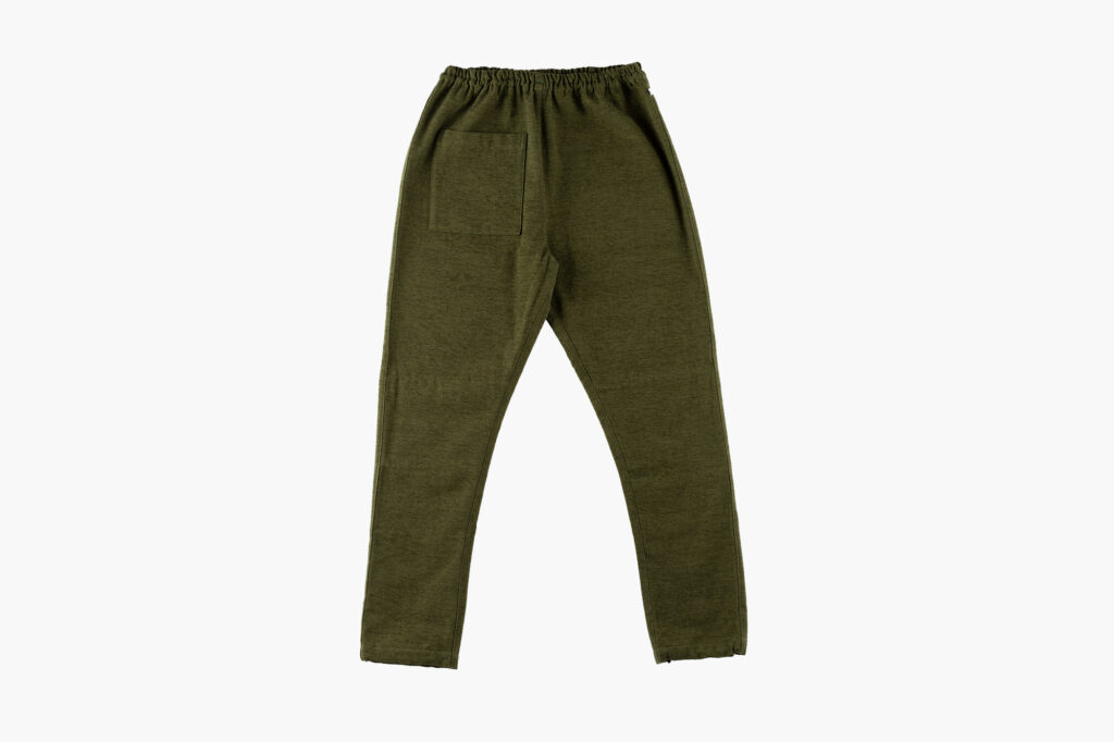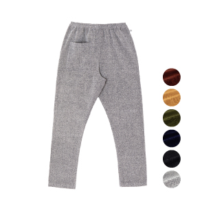 フワッとした肌あたりであたたかな着心地が特徴です。久留米絣の風合いを保つことで、秋冬はもちろん年間を通じて穿ける風合いになっています。