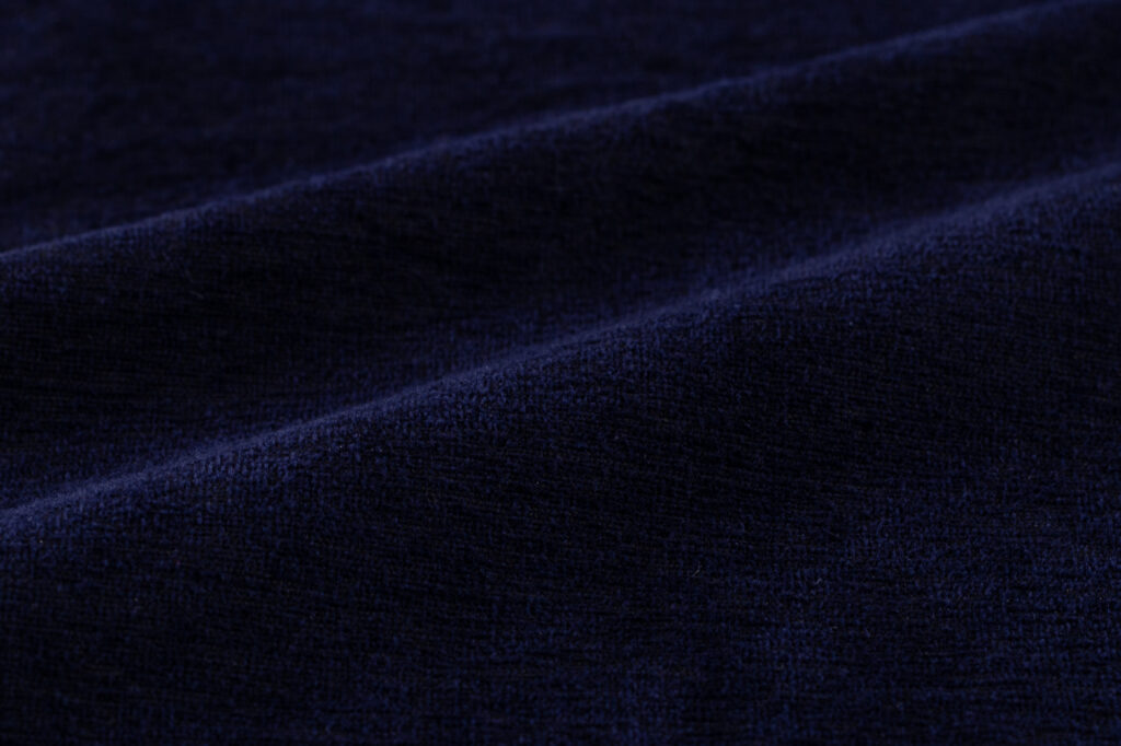 定番の久留米絣MONPEの中にも太い糸を使った厚地の生地がありますが、より肌寒い季節に着られる地厚で目の詰まった久留米絣をつくれないかと考え、綿モール糸*をよこ糸に使用した生地を考案しました。